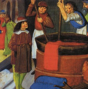 La situazione si ribalta intorno al XII secolo, quando il blu diventa un favorito assoluto, anche grazie a nuovi sistemi di produzione. Non è più indispensabile, infatti, utilizzare il costosissimo lapislazzulo per creare il colore (il famoso blu oltremare, laddove oltremare sta a indicare le lontane terre da cui proviene, non la sfumatura), né, per la tintura degli indumenti, si utilizza più soltanto l’indaco, altro prodotto caro e difficile da trovare, ma si scopre il guado, una pianta diffusa in tutta Europa, che fa la fortuna di città come Erfurt.