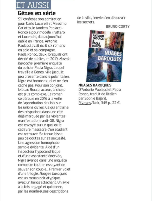 Su Le Figaro Littéraire, una delle testate letterarie più importanti di Francia, è uscita ieri una recensione di Nuages baroques firmata da Bruno Corty