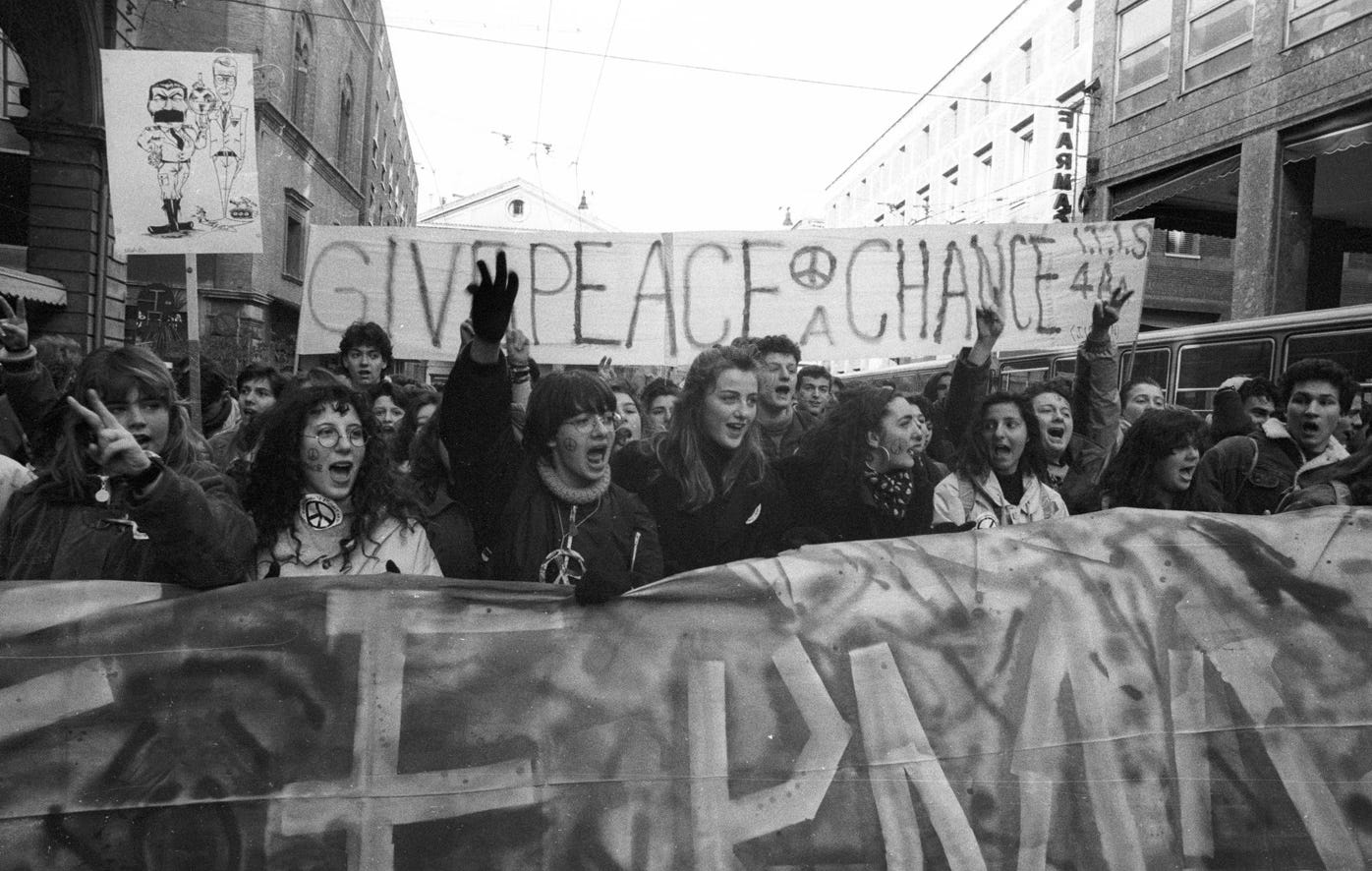 Torniamo a scuola dopo le feste natalizie e siamo in fermento, perché il 2 agosto dell’anno precedente l’Iraq di Saddam Hussein ha invaso il Kuwait, e molte voci parlano di guerra, anche se è da quando siamo piccoli che sentiamo parlare dell’instabilità politica del Medio Oriente: la Palestina, l’Intifada, gli attentati, i dirottamenti aerei, i bombardamenti su Beirut, le facce per noi familiari, viste ogni sera ai tg, di Yasser Arafat, dei mujaheddin, dell’ayatollah Khomeyni. Stavolta, però, in un certo modo, nell’inquadratura compariamo anche noi.