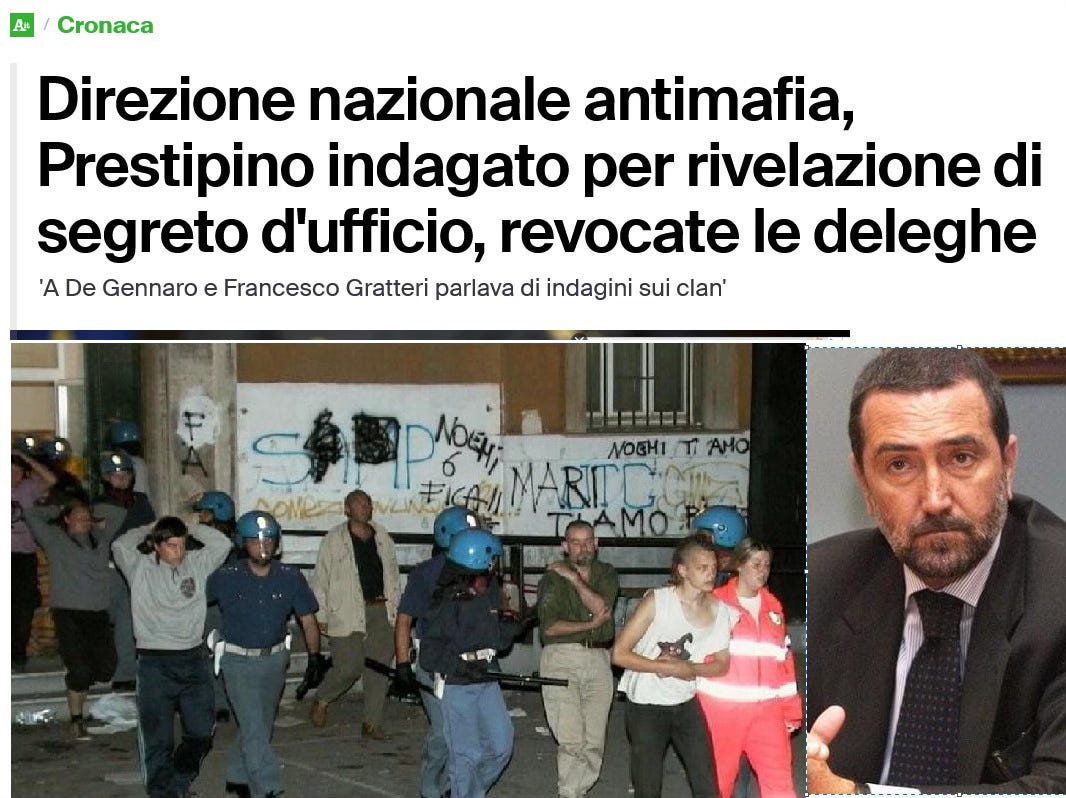 È questa qui. Come scrive Mario Di Vito, il procuratore aggiunto della Direzione Nazionale Antimafia Michele Prestipino è indagato per rivelazione del segreto d’ufficio: avrebbe infatti riferito notizie riservate sullo stato delle indagini su cosche calabresi e infiltrazioni dei clan nelle imprese del Nord a due persone. Una è l’immarcescibile Gianni De Gennaro, già capo della polizia, capo dei servizi segreti, presidente di Finmeccanica Leonardo, ora presidente di Eurolink, il General contractor per la progettazione e la costruzione del ponte sullo Stretto di Messina. L’altra persona è Francesco Gratteri, già condannato a 4 anni per falso a seguito della fallimentare gestione del G8 di Genova che ha portato al vergognoso massacro nella scuola Diaz, poi promosso a prefetto e ora consulente di Eurolink.